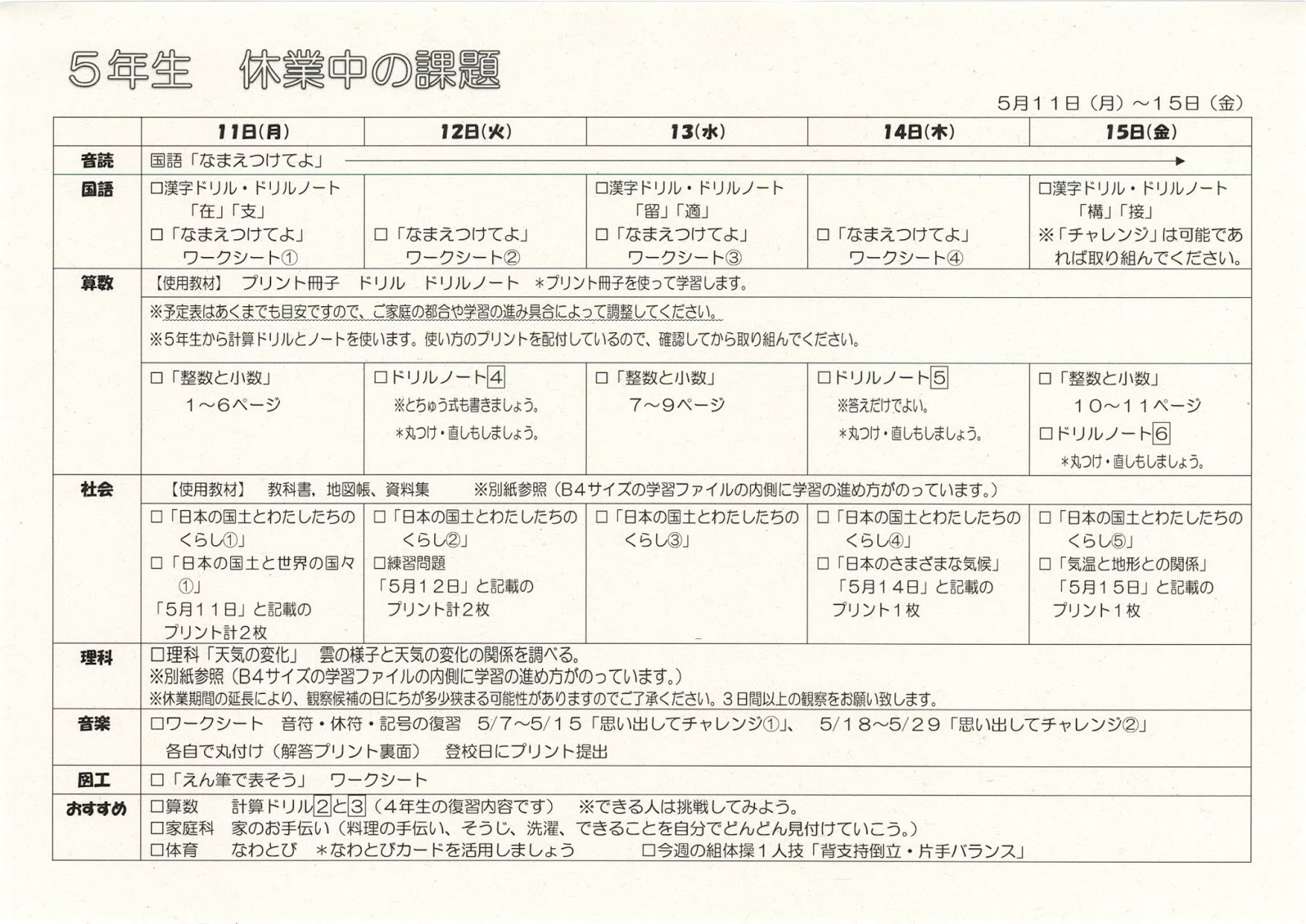 【重要】5年配付物一覧と課題について